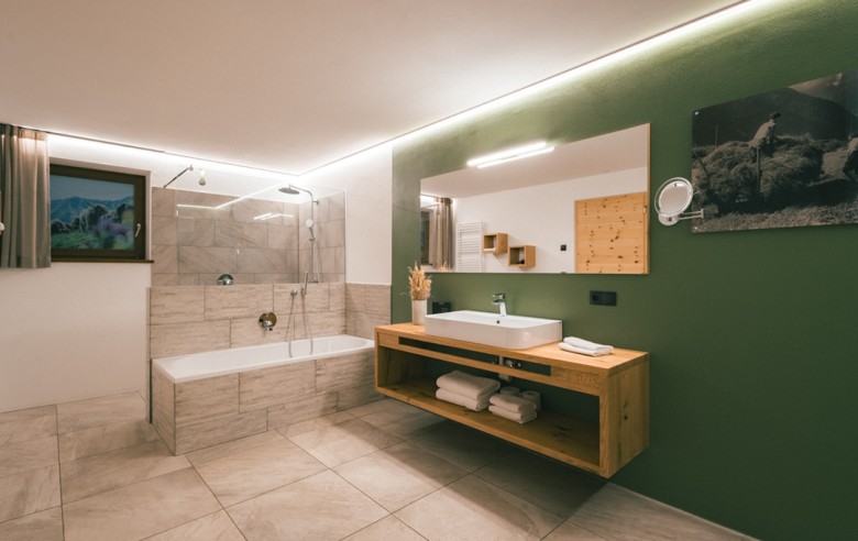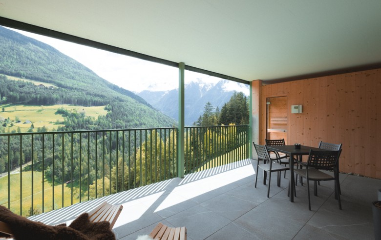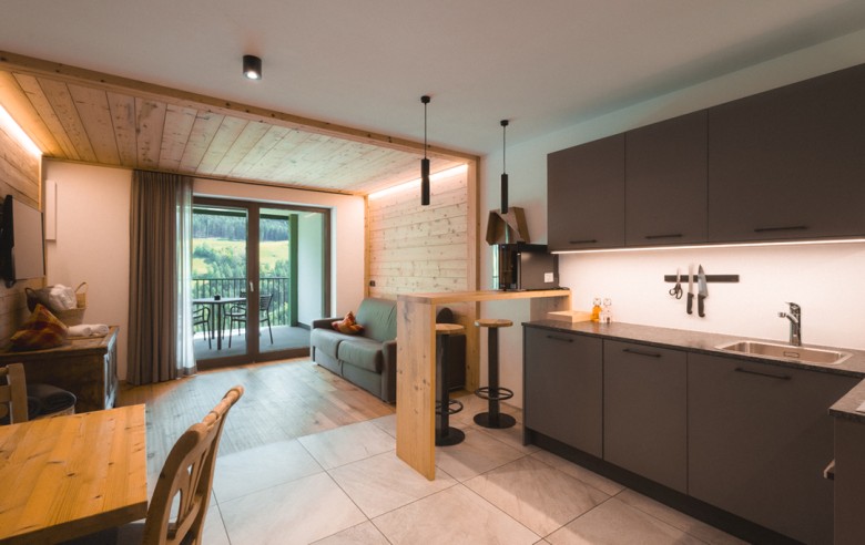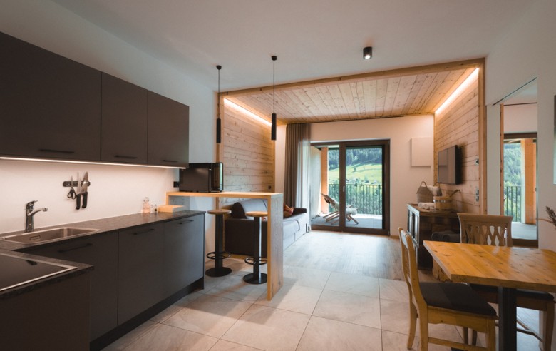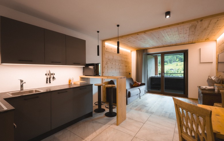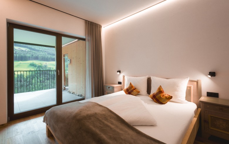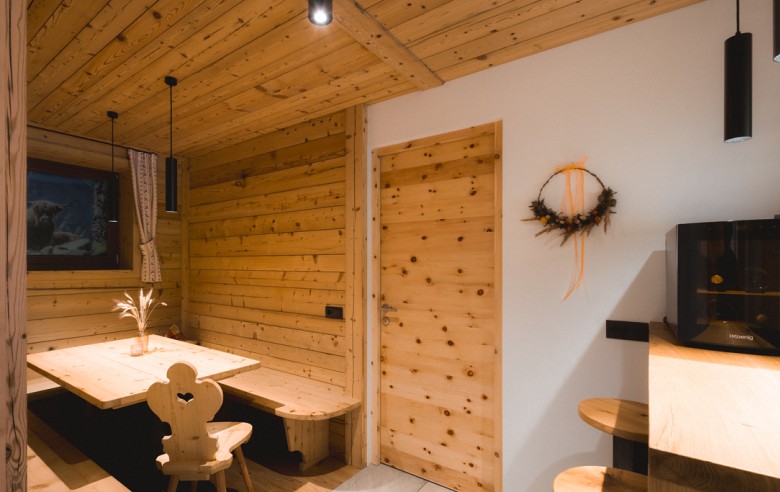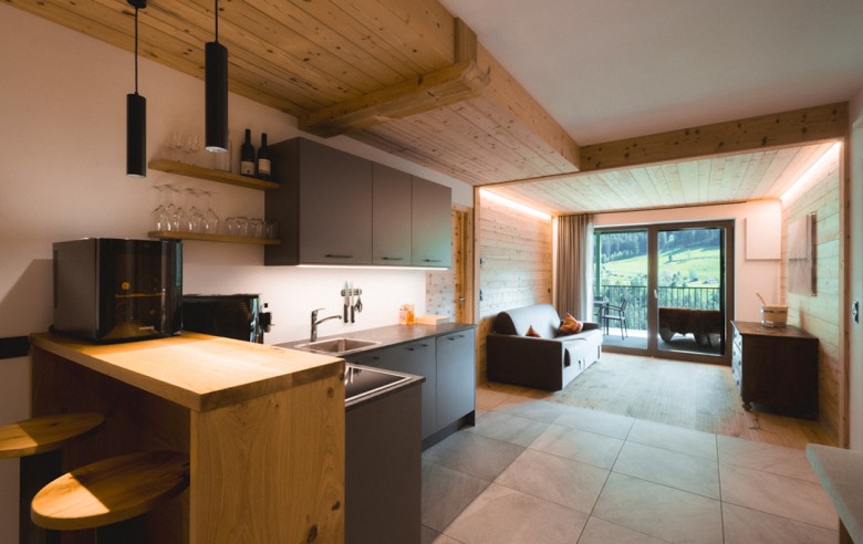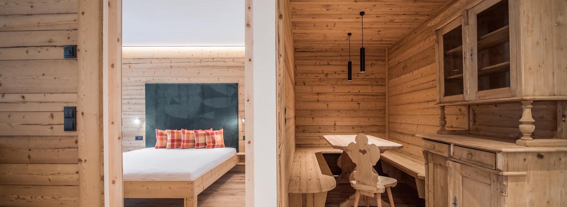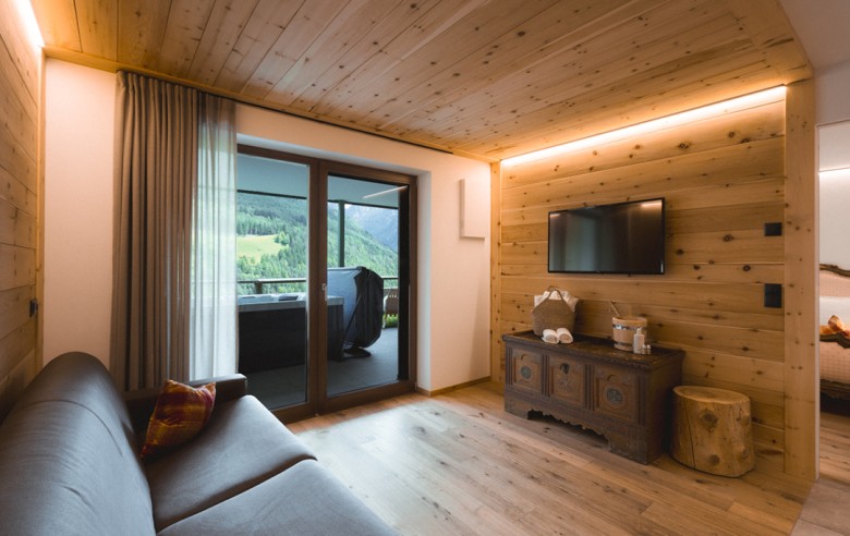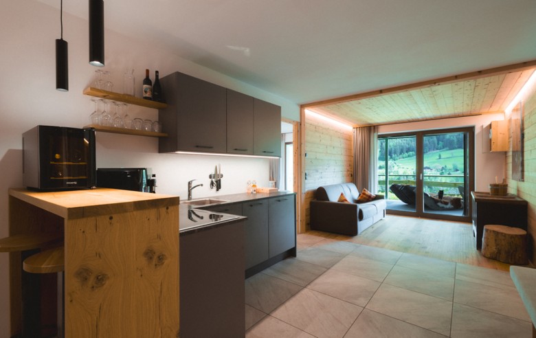 Wohlfühl-Lounge, Traumkulisse, eigene Sauna, Küche, Minibar und ein echtes „Feinheiten Frühstück“ mit Südtiroler Produkten aus unserer Manufaktur …