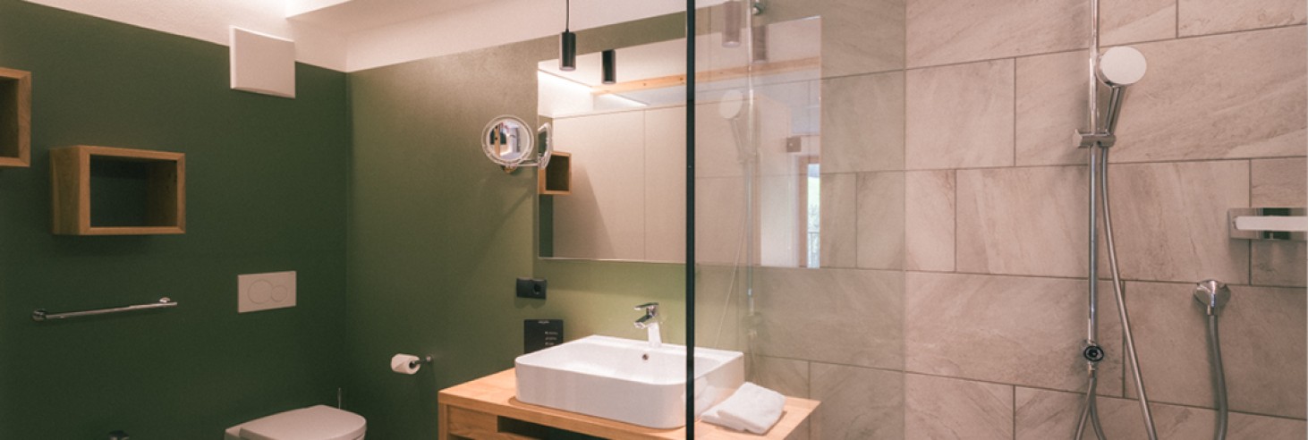 1 Badezimmer mit Dusche, WC, Bidet, Fön