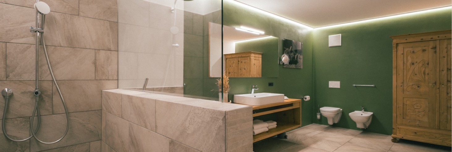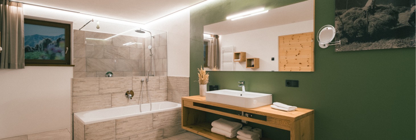 2 Badezimmer mit Badewanne und Dusche, WC, Bidet, Fön (eines davon barrierefrei)