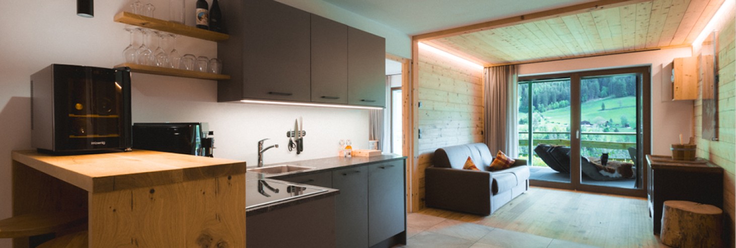 Ebenfalls steht eine Minibar mit Südtiroler Kleinigkeiten sowie unser Hofladen mit ausgewählten, hausgemachte Südtiroler Spezialitäten zur Disposition: mittags und abends können unsere Knödel und Schlutzer sowie Speck oder auch Nudeln, Bier und Wein hoher Qualität genossen werden!