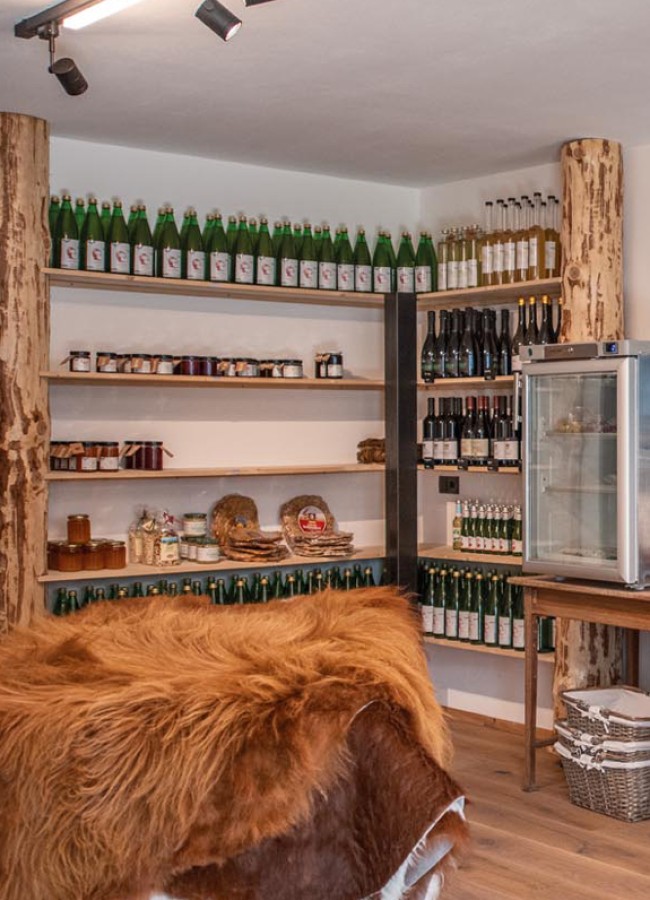 Nella manifattura del Hochzirm ingredienti di prima qualità vengono trasformati in piccole delizie. In ogni fetta di speck c’è tutta la nostra passione. Bontà genuine, create con amore. Nella bottega del nostro maso trovate salsicce, salumi e speck prodotti con la carne dei nostri animali. Le nostre piccole delizie sono anche un gustoso souvenir da regalare a chi si vuol bene. Oltre a offrire ai nostri ospiti prodotti tipici fatti in casa, come ad esempio canederli e mezzelune altoatesine chiamate 'Schlutzer', mettiamo a disposizione anche pasta, birra e vino. Con questi ingredienti è possibile preparare un ottimo pranzo così come una cena rustica. Potrete gustarli appieno nei nostri appartamenti in legno, che rappresentano autentiche strutture di tipo lodge.